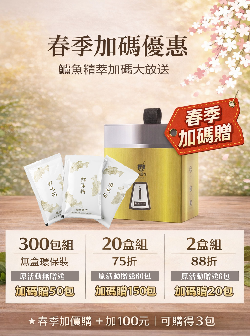 春季限定優惠【超值環保組】鱸魚精萃300包(夾鏈袋裝/無禮盒)+贈50包 +
